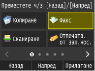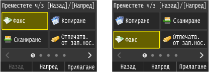 Продължителното докосване на <Назад>/<Напред> премества циклично бутона напред или назад.