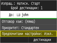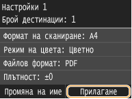 Често използвани настройки за <Сканиране> могат да бъдат запаметявани само за имейл, споделени папки и файлови сървъри. Добавяне на бутони от <Настройки Начал.екран>
