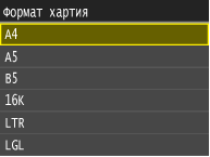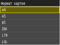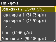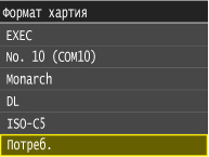 Ако екранът, показан по-горе, не се извежда, когато хартията е зареденаАко винаги зареждате една и съща хартия в многофункционалната тава, можете да пропуснете операциите за задаване на настройки за хартията, като запаметите формат и тип на хартията като настройка по подразбиране. Когато настройката по подразбиране е запаметена, екранът, показан по-горе, не се извежда. За да изведете екрана, изберете <Изкл.> за <Регистр. на настр. по подразб.> (Задаване на настройки за хартия по подразбиране за многофункционалната тава).