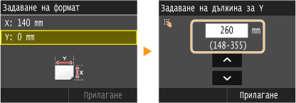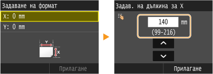 / или чрез бутоните с цифри (при въвеждане на цели и дробни числа) и докоснете <Прилагане>.![]() |