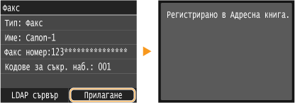 Въведете номера или адреса чрез бутоните с цифри и докоснете <Прилагане>.