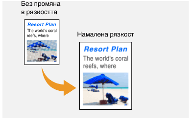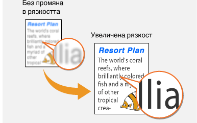 Можете да направите текста и линиите по-резки и снимките по-привлекателни. Увеличете рязкостта, за да направите текста и линиите по-резки, или намалете рязкостта, за да подобрите изгледа на снимки от списание.