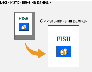 При копиране на документи, които са по-малки от изходния формат на хартията, може да се появят рамки около ръбовете на документа в копието. При копиране на срещулежащи страници на дебела книга, може да се появят тъмни сенки. <Изтриване на рамка> ви дава възможност да изтриете тези рамки и сенки.