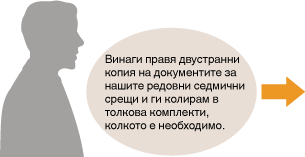 . Ако запаметите своите често използвани настройки като настройки по подразбиране, ще отпадне необходимостта да избирате едни и същи настройки при всяко копиране. Наред с това, можете също да запаметявате комбинации от настройки за копиране и да ги използвате, когато имате нужда от тях.