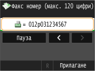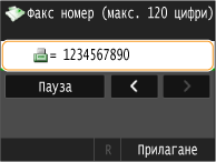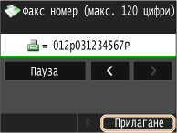 Докоснете <Пауза>, за да вмъкнете пауза в края на факс номера, ако е необходимо.
