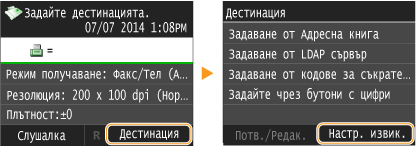 Ако изключите устройството или за <Ограничаване на нови дестинации> зададете настройка <Вкл.>, предходните дестинации ще бъдат изтрити и тази функция ще бъде забранена. Ограничаване на достъпните дестинации