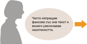 Увеличете наситеността и я запаметете като настройка по подразбиране. Оттук нататък можете да изпращате факс документи, без да променяте наситеността. Промяна на настройките по подразбиране