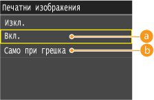 <Вкл.> или <Само при грешка>