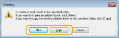 Ако желаете да създадете адресна книга, щракнете върху [New] (Нова), а ако желаете да копирате съществуваща адресна книга в зададената папка, щракнете върху [Copy] (Копиране).