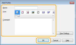 Въведете име на профила в [Name] (Име), изберете икона и след това щракнете върху [OK].
