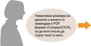 Променете файловия формат на <PDF (Компактен/OCR)> и го запаметете като настройка по подразбиране. Отсега нататък можете да сканирате, без да задавате никакви настройки. Промяна на настройките по подразбиране