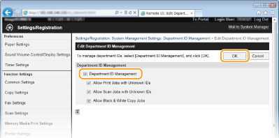 Поставете отметка за [Department ID Management] и щракнете върху [OK].