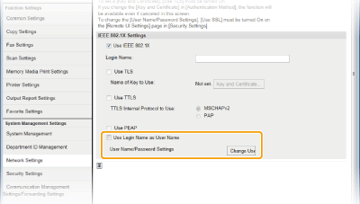 Необходимите настройки са почти същите като тези на TTLS. За вътрешен протокол се използва MS-CHAPv2. Активирайте TLS за Remote UI (Потребителски интерфейс за отдалечено управление), преди да конфигурирате този метод за удостоверяване (