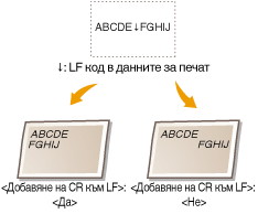 Достъпност на настройкитеВсички настройки на принтера, описани в този раздел, с изключение на <Презаписване на формат хартия> (Презаписване на формат хартия), са достъпни само за PCL печат. Задаването на тези настройки не е необходимо, например когато отпечатвате чрез драйвера за принтер UFR II.
