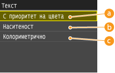Тази настройка се прилага само към и има ефект върху чисто черно, ако за "Чисто черен текст" е зададена настройка <Вкл.>.