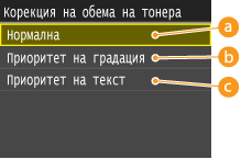 Тази функция е достъпна само ако за <Пестене на тонер> е зададена настройка <Изкл.>.