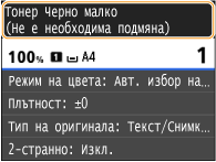 Ако тонерът се изразходва по време на отпечатване, оставащите разпечатки ще бъдат отпечатани, след като смените тонер касетата.