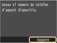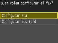 Si toqueu <Configurar més tard>, el mode de recepció s'estableix en <Automàtic>. Més endavant, quan vulgueu configurar les opcions de fax, mostreu la pantalla de configuració del fax tocant <Menú>  <Opcions de fax> <Guia de configuració de fax>.
