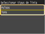 Seguiu el procediment següent per establir el tipus de línia telefònica. Si no esteu segur del tipus de línia telefònica que utilitzeu, poseu-vos en contacte amb la vostra companyia telefònica local. Pot ser que l'opció <Seleccionar tipus de línia> no estigui disponible segons el país on utilitzeu l'equip.