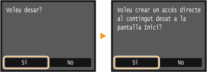 <Sí>.Si heu seleccionat opcions al pas 2 que ja estaven desades, apareixerà una pantalla de confirmació per substituir les opcions anteriors.