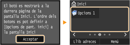 Si la pantalla d'inici està plena i no es poden desar més opcions, elimineu els espais amb <Opcions de pant. inici> a la pantalla d'inici o elimineu els botons desats. Eliminació de botons