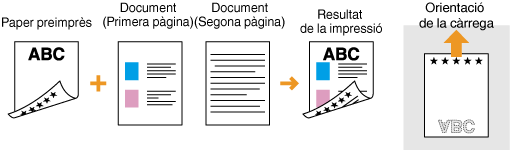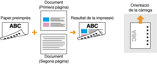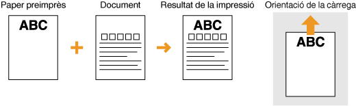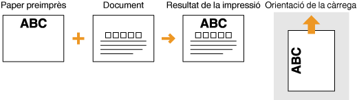En aquesta secció es descriu com carregar paper preimprès amb la col·locació i orientació correctes. Per obtenir una descripció del procediment general per carregar paper al calaix de paper o a la safata multiús, vegeu Càrrega de paper al calaix o Càrrega de paper a la safata multiús.