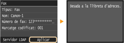 Introduïu el número o l'adreça amb les tecles numèriques i toqueu <Aplicar>.
