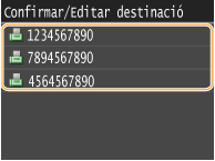 Utilitzeu les tecles numèriques del tauler de control per especificar les destinacions.