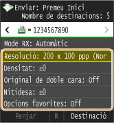 Per especificar amb les tecles numèriques, introduïu el número de fax, i toqueu <Aplicar>. Per especificar destinacions addicionals, toqueu <Destinació>  <Especificar amb tecles numèriques> abans d'introduir destinacions.