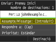 Utilitzeu la llibreta d'adreces o un servidor LDAP per a les destinacions <Per a>. Per especificar destinacions per a <CC> i <CCO>, heu d'utilitzar la llibreta d'adreces i el marcatge codificat.