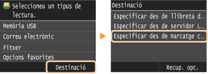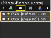 La Llibreta d'adreces us permet especificar una destinació seleccionant-la d'una llista de destinacions desades o cercant per nom les destinacions amb els noms dels destinataris. També podeu especificar directament una destinació introduint un número de tres dígits (número de marcatge codificat) assignat a una destinació.