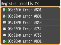 Si l'opció <Mostrar registre de treballs> està establerta com a <Off>, no podeu comprovar els registres de documents enviats.