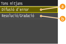 <Mida paper predeter.> i <Tipus paper predeterm.> no es poden especificar per separat. Especifiqueu la mida del paper a la pantalla <Mida paper predeter.> i després especifiqueu el tipus de paper a la pantalla <Tipus paper predeterm.>.