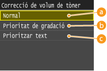 Aquesta funció només està disponible si l'opció <Estalvi de tòner> s'ha establert a <Off>.