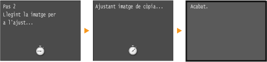 Aquest ajust manté l'estat optimitzat adquirit amb l'<Ajust complet>. Tingueu en compte que no podeu fer aquest ajust mentre utilitzeu algunes funcions, com ara llegir i imprimir. Si el resultat d'aquest ajust no és satisfactori, realitzeu l'<Ajust complet>. És possible que aquest ajust es realitzi automàticament després de substituir un cartutx de tòner.