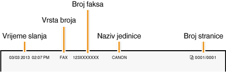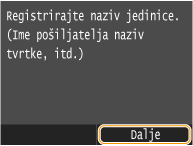 Registrirajte broj faksa i naziv uređaja. Podaci se ispisuju pri vrhu svake stranice koja se šalje iz uređaja.