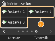 <Omiljene postavke kopiranja> <Omiljene postavke faksiranja> (imageRUNNER C1225iF) <Omiljene postavke skeniranja>Prikazuje često korištene registrirane postavke za svaku funkciju kopiranja, faksiranja i skeniranja. <Kopija osobne iskaznice> unaprijed se registrira u postavci <Postavke 1>. Registriranje postavki kopiranja koje se često koriste