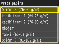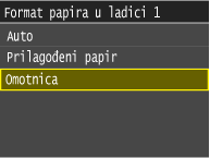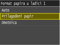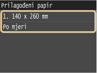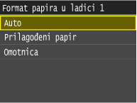 Za papir koji se ne prepoznaje automatski, npr. LGL ili EXEC, unaprijed navedite papir u postavci <Popis formata papira 1 za prepoznavanje> ili <Popis formata papira 2 za prepoznavanje>.