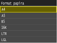 Ako se zaslon prikazan iznad ne prikazuje, a papir je umetnutAko uvijek umećete isti papir u višenamjensku ladicu, preskočite operacije postavljanja papira tako da registrirate format papira i vrstu kao standardne postavke. Kada je registrirana standardna postavka, međutim, zaslon iznad se ne prikazuje. Da bi se prikazao zaslon, odaberite <Isključeno> za <Registriraj standardne postavke> (Registriranje standardnih postavki papira za višenamjensku ladicu).