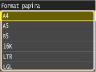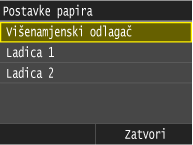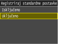 Nakon što registrirate standardne postavke ne prikazuje se zaslon za postavljanje papira ako je papir umetnut, a uvijek se koristi ista postavka. Ako umetnete drugi format ili vrstu papira bez promjene postavki papira, uređaj neće pravilno ispisivati. Da biste izbjegli taj problem, onemogućite standardnu postavku tako da u 3. koraku odaberete <Isključeno>, a zatim umetnete papir.