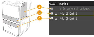 Navedite izvor papira koji sadrži papir koji želite koristiti za ispis kopija.