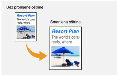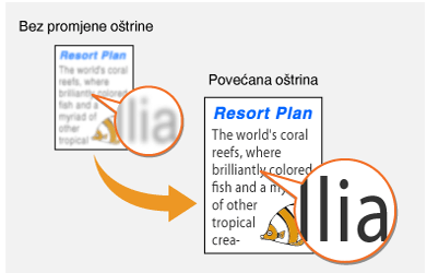 Zamućeni tekst i crte možete prikazati oštrije, a fotografije ljepše. Oštrinu povećajte da biste izoštrili zamućeni tekst i crte, a smanjite je da biste poboljšali izgled slika iz časopisa.