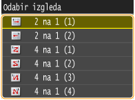 Pomoću postavke <2 na 1>/<4 na 1> automatski se smanjuje omjer kopiranja (omjer kopiranja prikazuje se na zaslonu). Možete povećati ili dodatno smanjiti omjer kopiranja prije pritiska na tipku