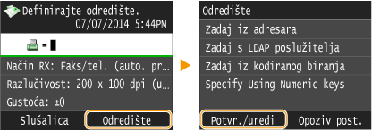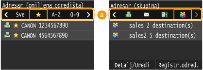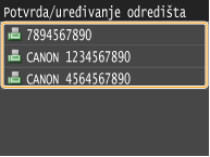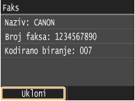 <Da>.Ako ste u drugom koraku naveli odredišta u grupnom biranju, na zaslonu se prikazuje <Broj odredišta>. Kada dodirnete tu stavku, prikazuju se detaljna odredišta u grupnom biranju.