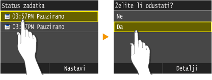 Dodirnite dokument <Status zadatka kopir./ispis> na zaslonu