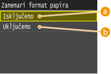 Odaberite želite li ispis na format A4 prebacivati na ispis na format Letter i obratno ako je jedan od tih formata papira umetnut, a drugi nije. Primjerice, ako ispisujete dokument formata Letter, a u uređaj je umetnut samo papir formata A4, dokument će se ispisati na papiru formata A4.