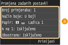 Zadane su postavke one postavke koje se prikazuju kada uključite uređaj ili pritisnete