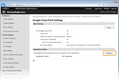 Kliknite vezu URL-a prikazanog u odjeljku [URL for Registration].