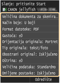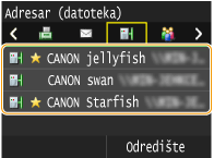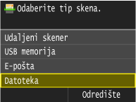 Dostupna odredišta za zajedničke mape i datotečne poslužitelje ograničena su na odredišta registrirana u adresaru. Ako nije registrirano nijedno odredište, prije skeniranja u zajedničke mape ili na datotečne poslužitelje registrirajte odredišta.
