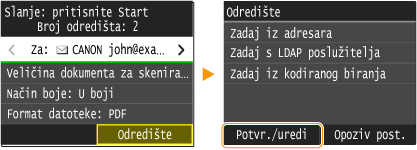 Ako želite jednostavno i brzo izbrisati odredišta bez prikaza popisa odredištaPrije dodirivanja tipke <Potvr./uredi> u prvom koraku možete dodirnuti